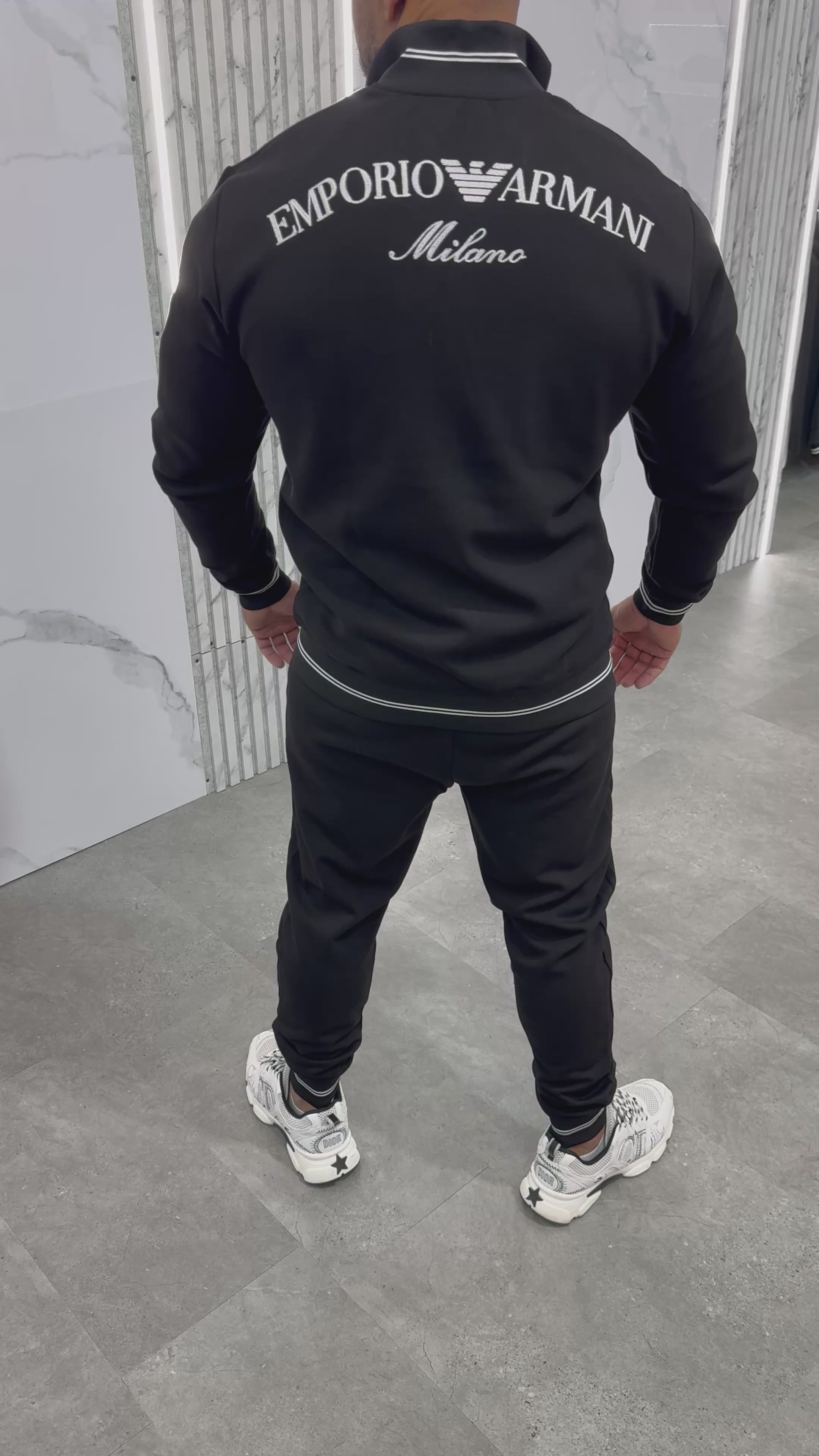 Ανακαλύψτε το σετ φόρμας Armani - S75, σχεδιασμένο με έμφαση στην ποιότητα και την άριστη εφαρμογή. Περιλαμβάνει ζακέτα και παντελόνι από υλικά υψηλής αντοχής που προσφέρουν άνεση και ανθεκτικότητα στην καθημερινή χρήση. Η κανονική εφαρμογή εξασφαλίζει κομψότητα και λειτουργικότητα, ιδανική για κάθε δραστηριότητα. Ένας συνδυασμός που συνδυάζει πρακτικότητα και στυλ με την υπογραφή της Armani.